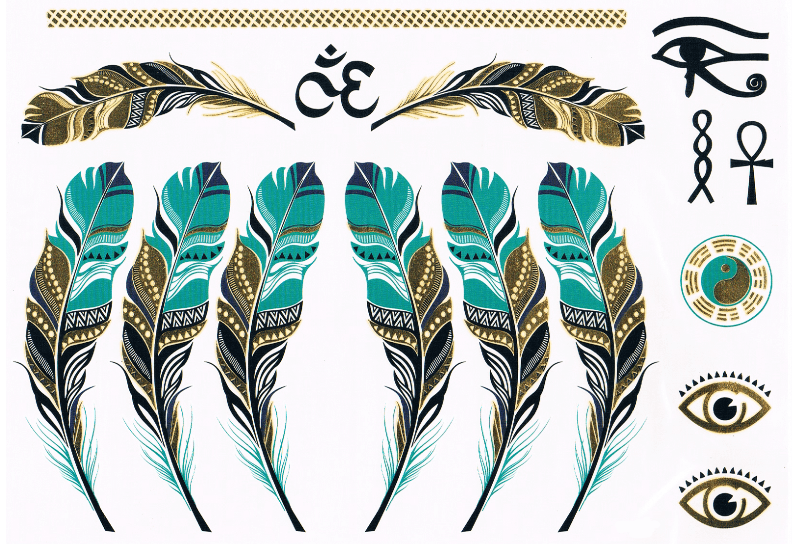 Plumes Egypte Turquoise/Argent/OR 2 (16 pièces)