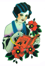 Femme livre old school